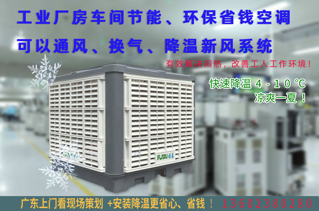福泰蒸發式水冷環保空調適用于開敞式及半開敞式環境,能夠直接輸送自然風及輸送降溫后的涼風。室外新鮮空氣經福泰蒸發式冷氣機過濾、降溫后向室內源源不斷的大量輸送,將室內帶有異味、粉塵和混濁悶熱的空氣排出室外,同時兼顧換氣降溫及增加空氣含氧量等多種效果,特別適用于高溫及人群密集場所(如:工廠車間、飯堂宿舍、寫字樓、網吧、養殖場、溫室、商場、候車室等)。