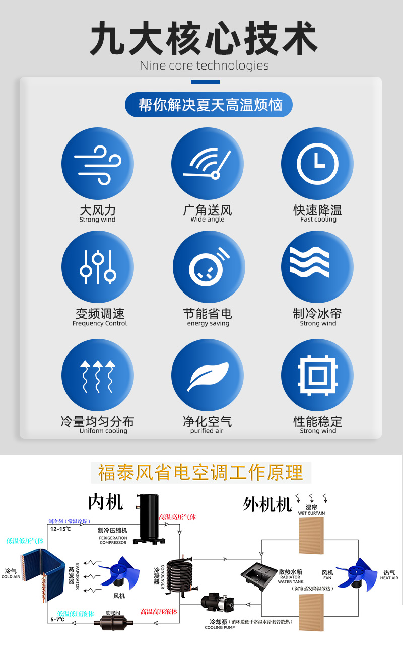 款式多樣有吊掛式,射流款,立式,管道式工業省電空調滿足不同車間降溫需求;